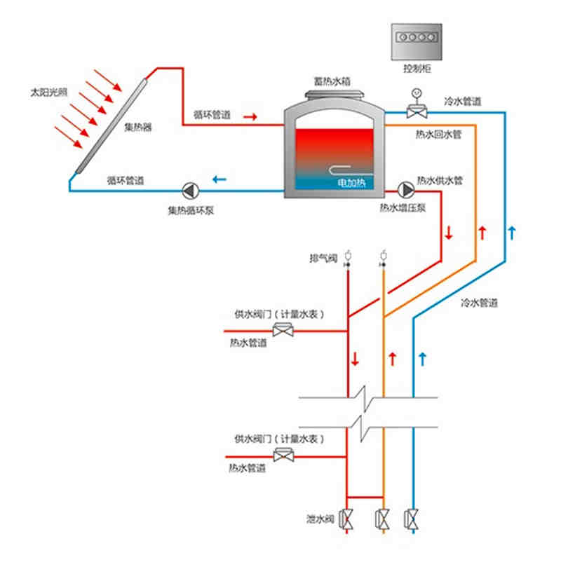 常用于大型太陽(yáng)能中央熱水工程,新建建筑強(qiáng)制安裝太陽(yáng)能熱水系統(tǒng)的工程配套。