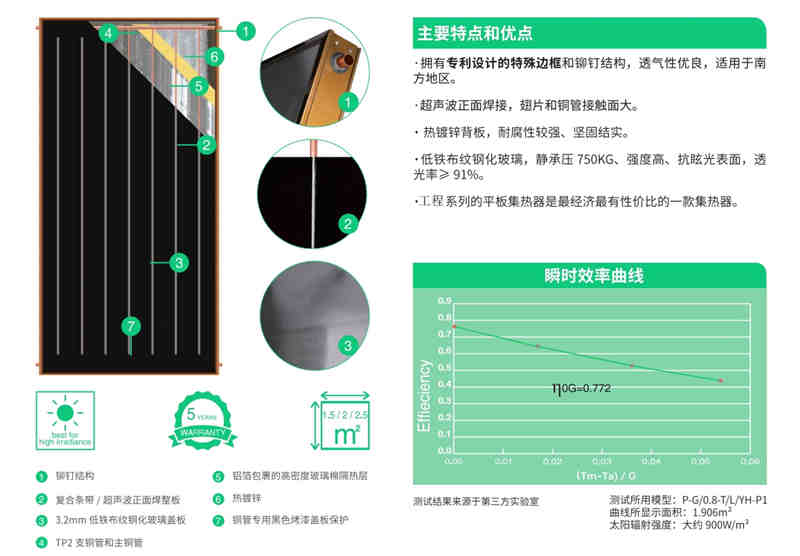 平板式太陽(yáng)能集熱器產(chǎn)品特點(diǎn):