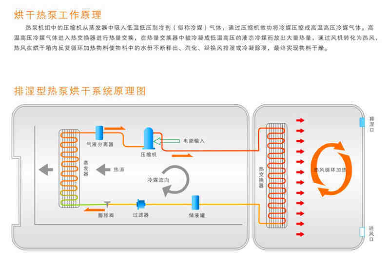 高溫熱泵烘干機組適用于海產品烘干、海魚烘干、米粉烘干、蔬菜烘干、黑銀耳烘干、花生烘干、臘腸烘干、煙葉烘干、皮革烘干、香菇烘干、枸杞烘干、蚊香烘干、佛香烘干、稻谷烘干、掛面烘干、腐竹烘干、中藥材烘干、紙品烘干、木材烘干、種子烘干、污泥烘干、牧草烘干、金銀花烘干、淮山烘干、茶葉烘干等的烘干。