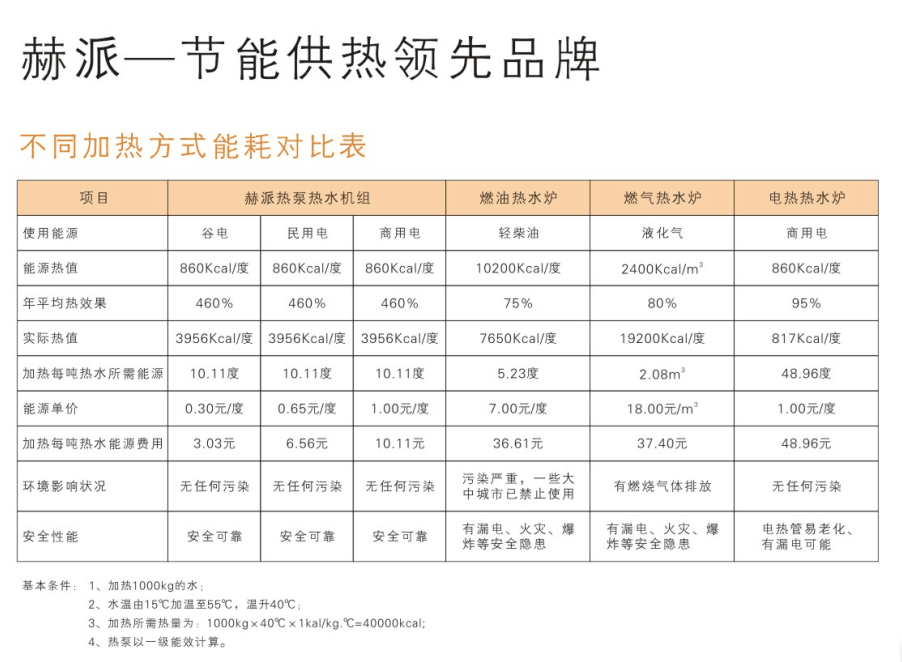 2、高效環保:只需消耗少量的電能,就可以在空氣中吸收大量的熱量,耗電量僅為電加熱器的1/3-1/4;同燃煤、油、氣熱水器相比,可節省75%左右的運行費用。1度電等于4度電。