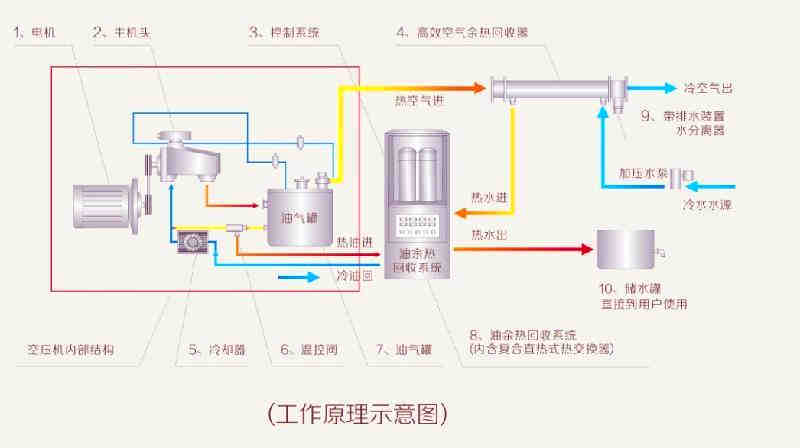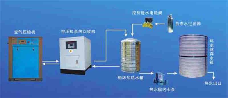 工作方式:節能降耗、0成本回收空壓機工作余熱產熱水