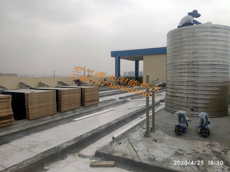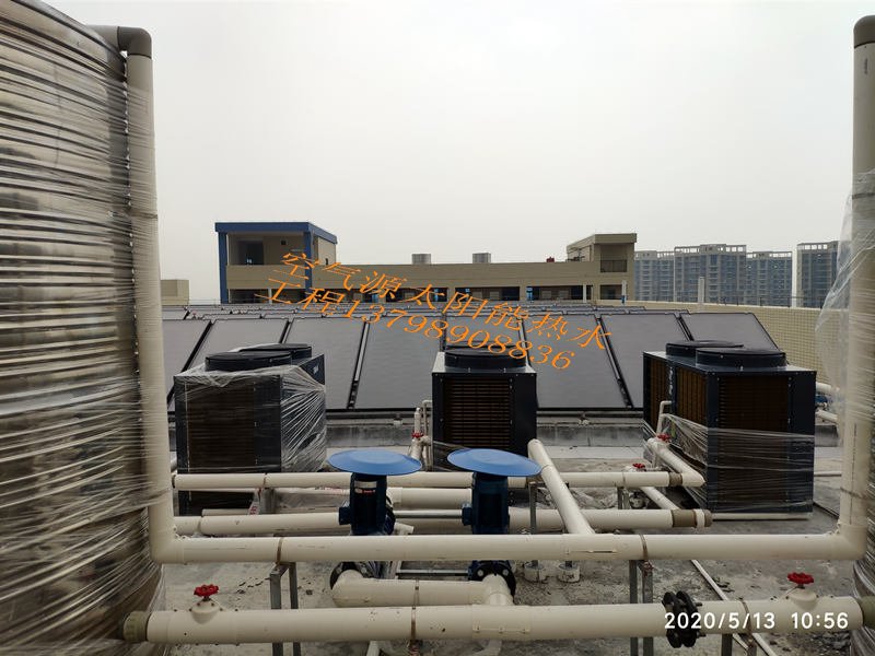 企業(yè)宿舍800人40噸生活熱水--赫派空氣能熱泵配五星太陽能平板集熱器