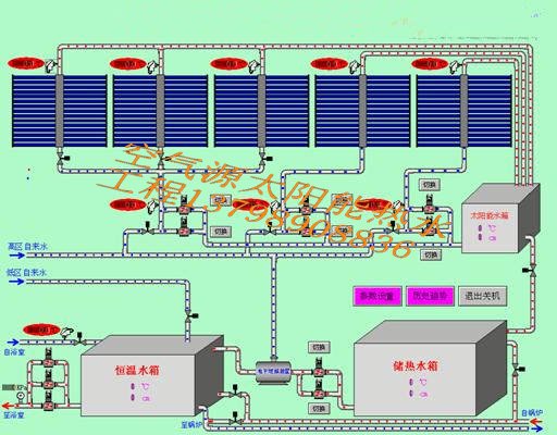 太陽能控制系統包括控制柜(信號處理系統、計算機系統、顯示系統、控制輸出系統、人機交互系統)、控制布線、末端傳 感模塊探頭(溫度探頭,傳壓力表)和端執行機構(水泵、電動閥門等)四部分。