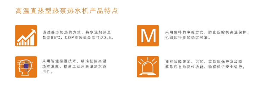 高溫熱泵可以有效提供80℃的高溫熱水用于化妝品廠、電鍍廠、印染廠,織布廠等的工業熱水用戶。